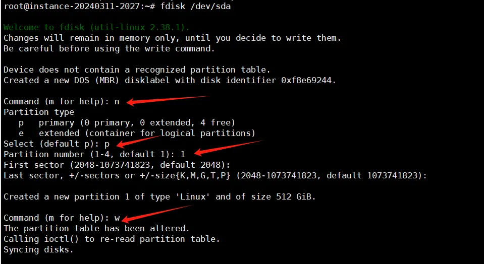 我这里演示的是/dev/sda,请替换为你实际要分区的硬盘